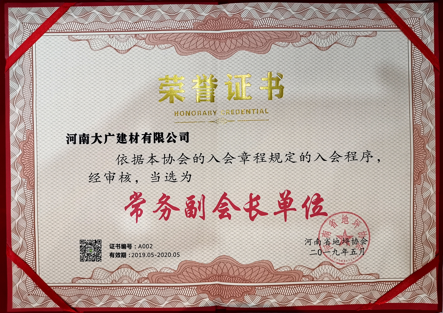 榮獲:河南省地坪協會**技術委員會:“委員”稱號